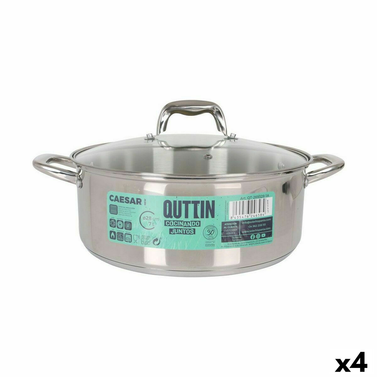 Se ti piace curare ogni singolo dettaglio della casa ed essere sempre alla moda in tema di prodotti che ti renderanno la vità più facile, compra Casseruola con coperchio in vetro Quttin Caesar Acciaio Ø 28 x 11 cm (4 Unità) al miglior prezzo.- Tipo: Utensili e accessori per la cucina